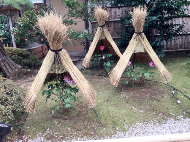 お庭の雪囲い