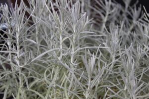 茎と葉はシルバー色ですが、その香りはカレーそのもの!ただカレー粉の原料ではなく、料理の風味付け・ポプリとして使われるようです。夏になると黄色い小さな花が咲きます。長期間色あせず、形がくずれないのでドライフラワーにするのもおすすめ。乾燥に強い一方、日本の梅雨や夏の湿度は苦手なため、湿度を上手く管理する必要があります。